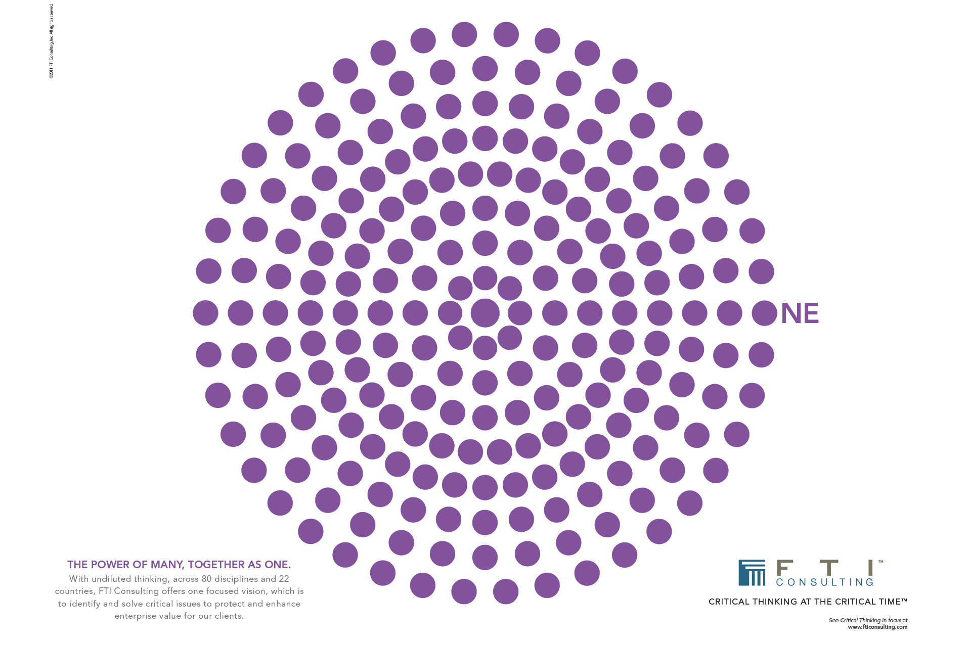 I led the development of a global brand strategy anchored in the message "Critical Thinking at the Critical Time." This platform brought over 30 acquired businesses together under one mission while allowing each practice area to retain its own unique voice and authority. It was not about conformity, it was about cohesion.
