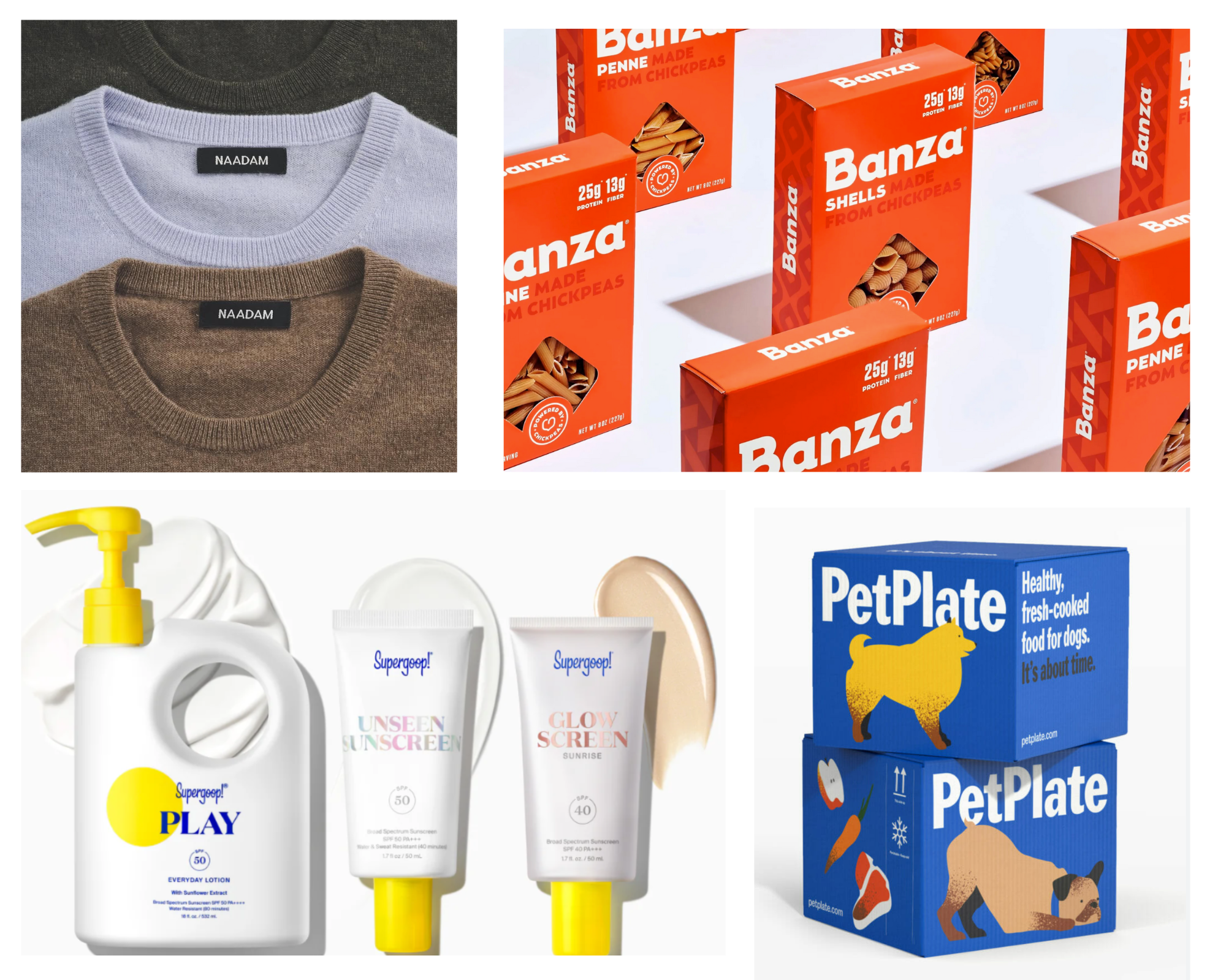 Supergoop!, Banza, HATCH, NAADAM, Blackwell Rum, Foodstirs, PetPlate, Powerful Foods, Zeel, and others. Some are now global forces. All had strong identities from the start.