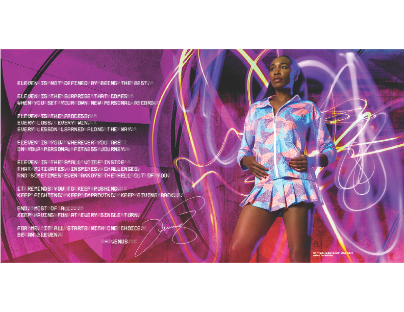 Before we met, Venus had already made the bold choice to forgo major endorsement deals and build her own tennis and performance brand from the ground up. She wore ELEVEN in every major match, which meant the quality had to perform at the highest level on the biggest global stages.